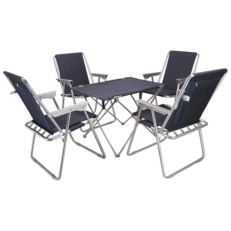 میز و صندلی تاشو سفری یکی از وسایلی است که امروزه در کمپینگ و پیک نیک قطعا به آن نیاز خواهید داشت. جنس بدنه صندلی از لوله صنعتی سبک با قطر و ضخامت ۸۰-۲۰ میلی متر می باشد، که به طور معمول بیشترین قطر و ضخامتی است که برای این مدل صندلی مورد استفاده قرار می گیرد. پوشش رنگ لوله الکتروستاتیک است که در برابر زنگ زدگی مقاوم می باشد. جنس روکش صندلی در طرح های مختلف، مقاوم در برابر نور آفتاب و قابل شستشو می باشد. دسته صندلی از جنس پلاستیک می باشد که به وسیله تسمه فلزی که در زیر آن قرار داده شده است، تحمل وزن صندلی را تا ۱۵۰ کیلوگرم افزایش می دهد. میز مسافرتی تاشو در واقع قابلیت تاشدن به صورت استوانهای شکل را دارد. این میز به دلیل داشتن قابلیت تاشدن حمل راحتی دارد.